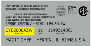 Model numbers can be made up of numbers (1005400, for example) or a combination of letters and numbers (LAT1000AAE). The model number will most likely appear on either a paper sticker or a metal plate. Your appliance's model number tag may look similar to the sample model number tags shown here (model number highlighted in yellow):
